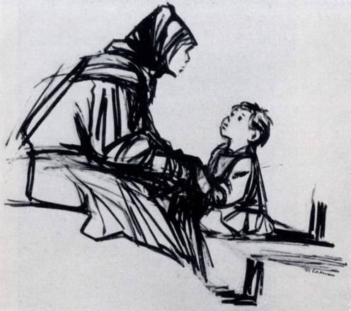 Фл. Кордеску. Женщина с ребенком. Рисунок. Тушь - илл. 278 а