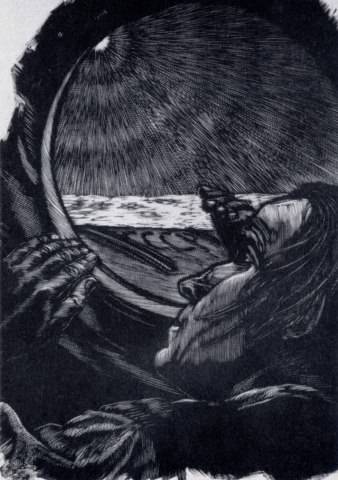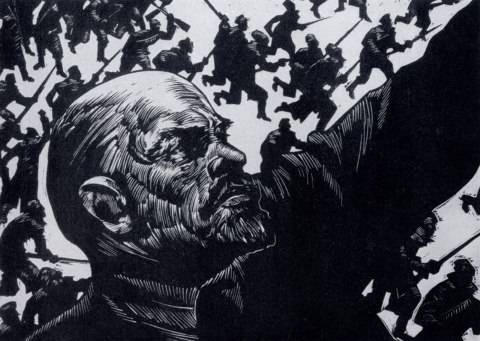 Ж. Перахим. В. И. Ленин. Иллюстрация к книге Джона Рида «10 дней, которые потрясли мир». Гравюра на линолеуме. 1958 г - илл. 274 а