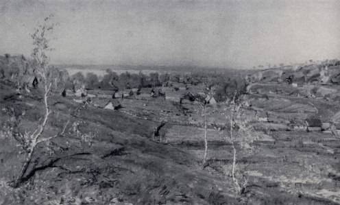 Н. М. Ромадин. Село Хмелевка. Из серии пейзажей «Волга русская река». 1944 г. Москва, Третьяковская галлерея - илл. 86 а