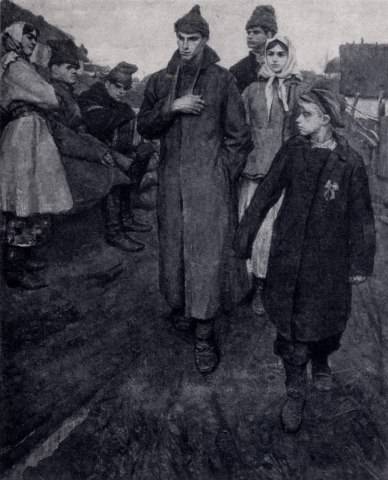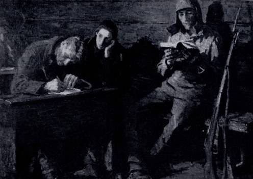 Продолжая линию жанровой трактовки исторической темы, многие молодые живописцы создали впечатляющие произведения. Среди них картина братьев А. П. и С. П. Ткачевых (р. 1925 и 1922) «Между боями» (1960; ГТГ). В этом полотне привлекает проникновенное сердечное отношение авторов к своим героям. Становление нового человека, процесс его формирования вот что занимает художников. Такой взгляд на эпоху гражданской войны нечто новое в советской живописи, характерное для искусства второй половины 50 60-х гг. Он говорит об углублении гуманистической природы советского искусства, для которого в центре внимания всегда стоял простой человек с миром его идеалов, чувствований и стремлении. Образ этого человека становится все богаче и многограннее, сложнее и жизненнее. Психологической емкостью разработки сюжета, точностью характеристик персонажей отличается и картина В. А. Чеканюка (р. 1932) «Первая комсомольская ячейка на селе» (1958).