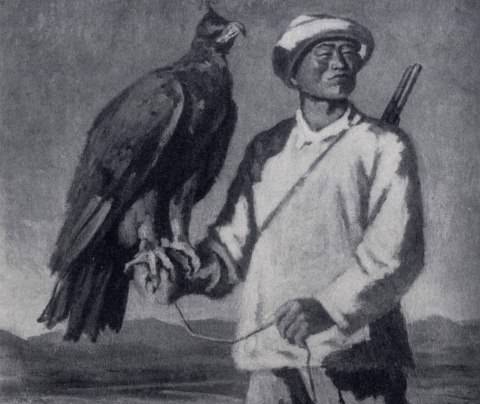 С. А. Чуйков. Охотник с беркутом. 1938 г. Фрунзе, Музей изобразительных искусств Киргизской ССР - илл. 84 а