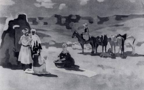 С. А. Мамбеев. В ауле (У юрты). 1958 г. Алма-Ата, Художественная галлерея им. Т. Г. Шевченко - илл. 95 б