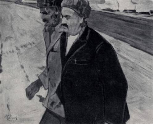 Мужественностью образов близок Салахову латышский живописец Э. К. Илтнер (р. 1925). Но в его произведениях больше драматизма и раздумья. Такова картина «Мужья возвращаются» (1957). Жены рыбаков, встречающие своих мужей, полны тревожного ожидания. Художник не хочет ничего приукрашивать. Напротив, он словно говорит, что жизнь изображенных им людей полна суровых неожиданностей, что их труд требует мужества и самообладания.