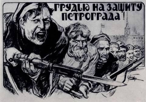А. П. Апсит (Петров). Грудью на защиту Петрограда! Плакат. 1918 г - илл. 144 а