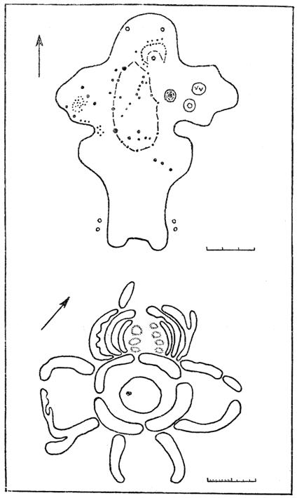 Рис.3. Гигантские фигуры Среднего Поднепровья: "Великанша" языческих славян и "Паук" племен бронзового века.