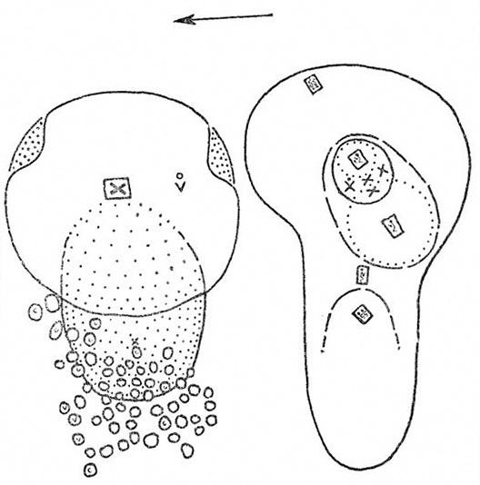 продолговатый выкид и воронки ниже его имели вид мужского органа. С этой символикой согласуются находки раковин в некоторых из воронок: моллюски издревле символизировали воспроизводство бытия, рождение и возрождение.