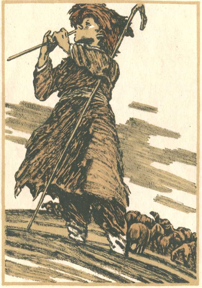 Мальчик, мерно раскачиваясь, играл на туйдуке . Протяжные звуки печальной мелодии «Айджама́л» разносились далеко-далеко. Увлеченный, подпасок не замечал