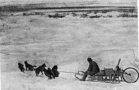 Выехав на реку, решили двигаться по льду, так как на нем лежал небольшой слой снега, ноги почти не скользили. Река сильно извивалась, и Аймет, где это было можно, старался сократить путь. Чтобы взять азимут, часто приходилось приостанавливать движение, это особенно сердило Аймета. Он все время доказывал, что от частых остановок собаки устают больше, чем если бы они непрерывно бежали. К вечеру прошли 30 километров. Для ночлега выбрали место в кустарнике, расчистили снег до самой земли, наложили груду веток, и спальное ложе было готово.