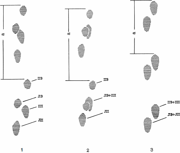 трехчетка» преобладающий аллюр на протяжении зимы, а 105 см; 3 «двухчетка» аллюр по глубокоснежью, а 100 см (лп левая передняя, пп правая передняя, лз левая задняя, пз правая задняя лапа). В качестве длины прыжков приводится средний промер по наблюдениям в Вологодской обл. Рисунок Е. Н. Матюшкина.
