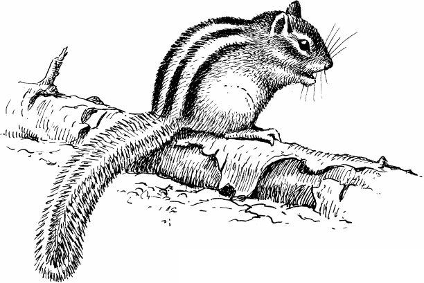 Бурундук. Похожий на маленькую белочку, полосатый, длиннохвостый бурундук один из самых привлекательных зверьков северного леса. Дневной по образу жизни, подвижный, смелый и крикливый, он часто сам привлекает внимание человека; наблюдать его легко. Не раз в Уссурийской тайге я спокойно зарисовывал бурундуков, бегавших у меня по ногам.