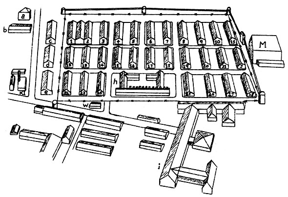 М. Здание, служившее складом для вещей и ценностей, снятых с трупов погибших в концлагере