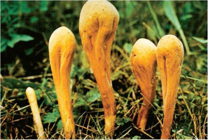 более крупными размерами среди рогатиковых. Плодовое тело достигает в высоту 20-25 см и ширины около 3 см, булавовидное, продольно-морщинистое или бороздчатое, с возрастом часто сплющенное с боков, светло-желтое или рыжеватое. При надавливании поверхность гриба приобретает винно-красноватый оттенок. Мякоть у молодых грибов твердая, позже становится губчатой, на изломе или разрезе также меняет цвет на красноватый. Пахнет приятно. Растет на перегнойных почвах лиственных и смешанных лесов. Его можно встретить е лета до осени. Съедобный, но только в молодом возрасте, их можно варить, жарить. Старые грибы горьковатые, Гриб редкий. Собирать его нельзя находится под охраной, занесен в Красную книгу России.