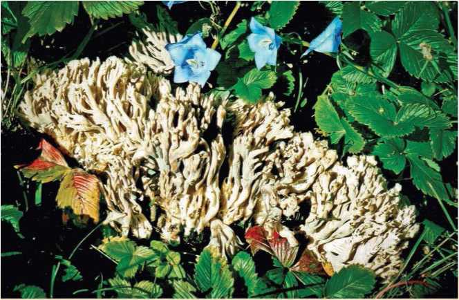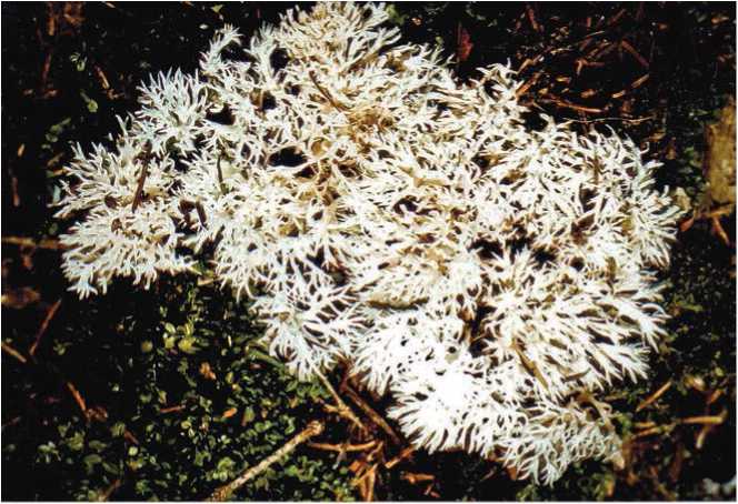 Плодовое тело высотой до 8-10 ем, кустистое с бесчисленными неправильными разветвлениями, гребенчато-зубчатые веточки которых сплюснуты и заострены. Этот гриб имеет много вариантов по цвету: белый, беловато-серый, палевый, кремовый, желтоватый, иногда даже с розоватым оттенком, а с возрастом охристый или буроватый. Мякоть с горьким остаточным вкусом, не имеет выраженного запаха. Плодовое тело в основании образует короткую плотную ножку высотой 1,5-2 ем. Растет в хвойных лесах, но встречается и в лиственных на лесной подстилке, на хвойной иглице е августа до октября. Встречается