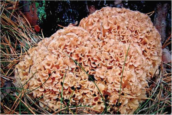 Плодовое тело обычно неравномерно округлое, мясистое, толстое, напоминающее губку, диаметром до 40 см, весом до 5 кг, состоит из малозаметной плотной ножки с отходящими от ее вершины разветвлениями, похожими на лопастные, волнистые или курчавые пластинки. Цвет гриба кремоватыи или охряно-желтый, с возрастом становится буроватым. Мякоть эластичная, бежевая или охряная. Растет на почве возле живых хвойных деревьев иди их пней, чаще сосновых. Распространен, по-видимому, повсеместно, но встречается редко, одиночно. Превосходный съедобный гриб высокого качества. Идет главным образом для приготовления супов, жаркого и сушки, однако следует помнить, что гриб охраняемый, занесен в Красную книгу России, поэтому в целях сохранения его для потомков не следует разрушать целостность грибницы. А еще лучше, если дать дожить до естественной старости. Это позволит ему расселиться в другом месте.