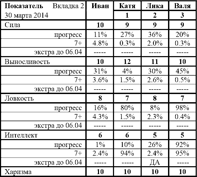 Вечернее распределение Энергии началось с того, что я поднял Уровень отстающей в этом характеристике Лике. Энергия 7 104 (-8 100). Очко я вложил ей в Интеллект. Услышав это, Катя и Валя злорадно заухмылялись. Всю эту неделю они качали свой Интеллект, потратив на методики от Смайла сорок часов своего времени, для чего отказались от нескольких тренировок на Силу и Ловкость.
