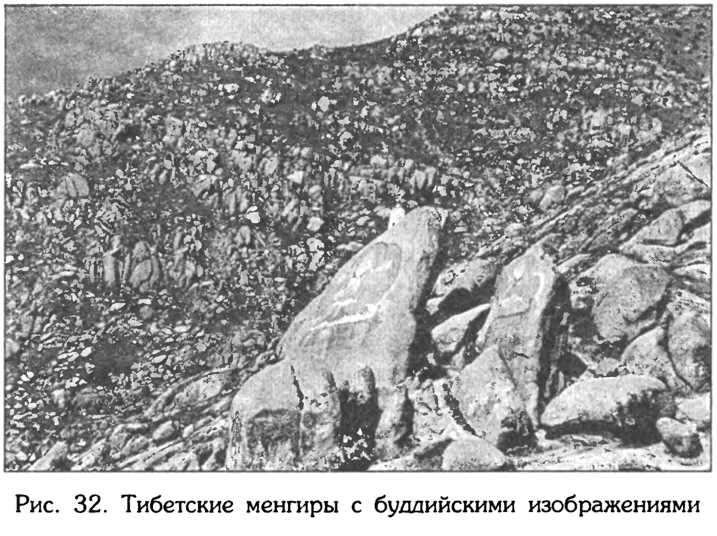 работающий в Китае, провел отпуск в Тибете. По моей просьбе он сфотографировал некоторые из древних камней, ставших ламаистскими святынями (рис. 32; фото Н. Демина).