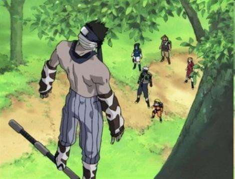 А сам Какаши заранее раскрывший свой второй глаз, на котором оказался шаринган, побежал в туман и скрылся там. Весьма опрометчиво как по мне. В первую очередь Забудза будет нападать на нас, а Какаши решил видимо максимально увести опасность от команды.