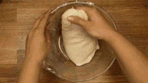 Наконец замешанное тесто отложил и миску накрыл полотенцем.