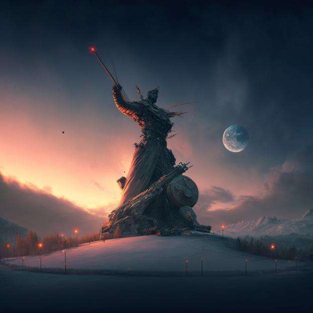 - Хах, нет, такого не было ведь вмешалась третья сторона. Это были так же разные страны во главе которых стояли избранные что сошлись в схватке с нашим императором и остановили его. Тогда и был подписан договор, по которому ни один из избранных не мог выйти войной на другое государство, ведь тогда вмешаются другие и остановят его. Так и случилось тогда, и в пылу их битвы рука что указывала в сторону чужих границ была оторвана вместе с частью туловища изваяния. Но вот меч остался цел, и его остриё все так же загорается алой звездой в каждый закат.
