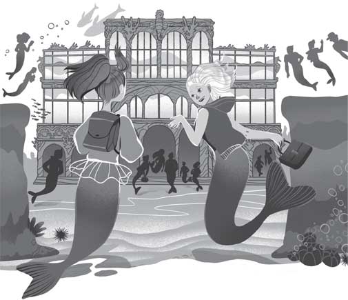 Русалочки присоединились к другим детям. Их тут было очень много все тянулись в одном направлении. Волна учеников понесла Бринн и Джейд по территории школы к обширному трехэтажному комплексу пещер с классами, коридорами, спортзалами, аудиториями и внутренними двориками. Бринн и Джейд молча вплыли в массивные двери центрального входа. Эта школа была раз в десять больше,