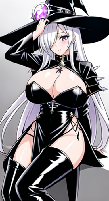 Макс отступил на несколько шагов. Девушка, очень высокая, с бледной кожей. Глаз, который он видел, был левым, правая сторона лица выше рта была закрыта идущей наискось прядью волос перламутрового цвета. Её густая грива ниспадала ниже колен, причём отдельные прядки отливали зелёным, синим, или красным. На голове располагалась классическая коническая широкополая шляпа. То, что он принял за декольте, оказалось верхней частью корсета, одета она была в мантию с высоким воротником и рукавами. Её шея была украшена ошейником с двухдюймовыми гранёными, наточенными шипами. Обута девушка была в ботфорты, выше середины бедра, застёгивающиеся ремнями.