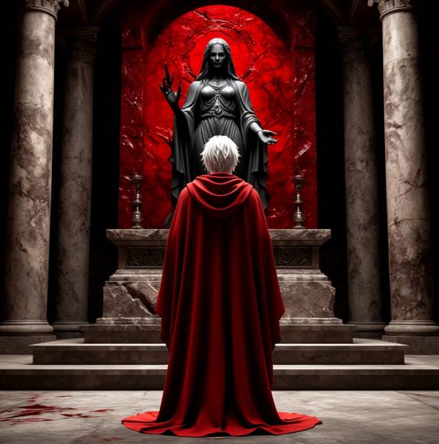 Я пойду к алтарю, нужно поговорить с богиней и выяснить, причастна ли к этому ее скрытная сестра или нет сказал он своему заместителю, спешно направляясь в центральный зал, где стоял алтарь из камня, больше похожий на губку и впитывающий каждую каплю крови.