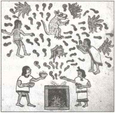 Упоминается о людях, ставшими птицами, и в рукописи ацтеков: «Итак, это произошло в год Кэ Тэкпатль, что означает камень, в день Науи-Киауитль, что означает четыре дождя. Люди метались и гибли, охваченные огненным дождем, они превращались в птиц. Солнце едва было видно, все дома охватило пламя, и весь человеческий род погиб».