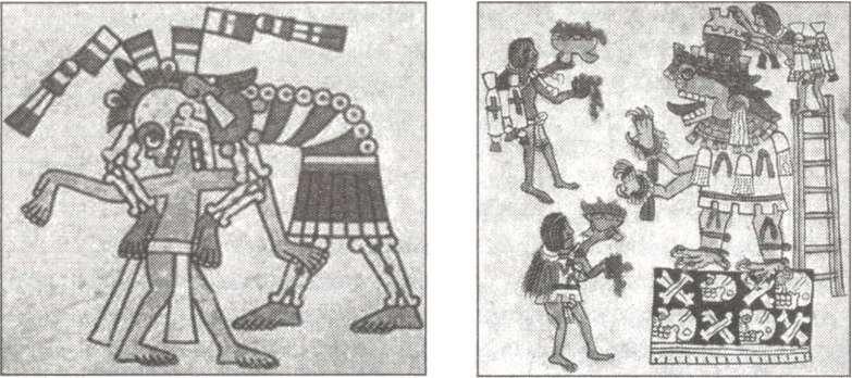 Рис. 80. Кодекс «Мальябекиано». Жертвоприношения ацтекскому Тифону