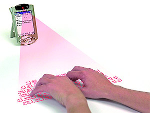 Отдельное семейство разработок для ввода текста составляют решения для мобильных девайсов. Несмотря на все усилия производителей писать не то что солидные тексты, но даже обстоятельные сообщения по e-mail в мобильнике или КПК до сих пор проблематично. Многократные нажатия в поисках нужной буквы, миниатюрные QWERTY-раскладки, экранные эмуляторы и зарисовки символов стилусом все это вряд ли можно назвать удобными средствами. Самым логичным решением этой проблемы долгое время казалось постепенное распространение проецируемых полноразмерных клавиатур, которые когда-то разработала израильская компания Developer VKB [6] и отдала на дальнейшее развитие Siemens.