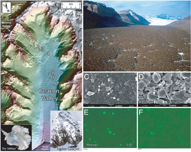Вообще-то, практически любой ледник можно сравнить с ледяной рекой. Под давлением лед становится текучим. В «верховьях» он образуется из снега и изморози, в «низовьях» тает или (что типично для Антарктиды) отваливается кусками-айсбергами в океан. Поэтому практически повсюду на нашей планете возраст самого старого льда не достигает миллиона лет. Например, в Гренландии недавно нашли рекордные участки льда возрастом в 800 тысяч лет, и, кстати, обнаружили в них бактерии. Зато теперь американо-южнокорейская команда ученых сообщила о находке и исследовании образцов льда, которые они считают самыми старыми на планете им 8 млн. лет. Эти фрагменты собраны в складках трансантарктических гор: геологические ловушки удержали лед из миоценовой эпохи! (Кстати, если рассмотреть схему точек сбора образцов, можно предположить, что ниже по течению ледника лед может быть еще старше.)