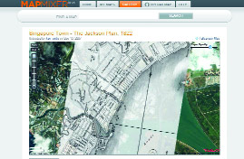 Другим «новоселом» Yahoo стал сервис MapMixer, порадовавший любителей географии. Он позволяет «натягивать» на интерактивные онлайновые карты обычные схемы и фотографии земной поверхности, смешивая их содержимое. Для этого на сайт нужно загрузить «картежный» графический файл, а затем выбрать для него подложку из анналов сервиса Yahoo Maps, точно совместив два слоя. Полученный таким образом «географический коктейль» приобретает все свойства онлайновой карты его можно произвольным образом резать и масштабировать. Поскольку прозрачность слоев поддается регулировке при помощи бегунка, можно воочию наблюдать, как на месте одной карты постепенно проступает другая. Так, старый Сингапур, запечатленный лейтенантом английского флота Филипом Джексоном на легендарном плане 1822 года, плавно превращается в современный мегаполис, полный небоскребов и хайтек-предприятий (см. скриншот). Хранить подобные произведения можно как на сайте Yahoo, так и на «личной делянке» MapMixer наделен удобными средствами для выгрузки карт в ряд популярнейших блогов.