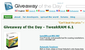 Хотя в России, по обыкновению, все программное обеспечение «бесплатное», многим пользователям было бы спокойнее (а с недавних пор и безопаснее) иметь на компьютере легальные копии программ. Тем интереснее заглянуть на сервис Giveaway of the Day. Каждый день там появляется программа, которую в течение суток (или более длительного срока зависит от решения авторов софтины) можно загрузить и установить на свой компьютер абсолютно бесплатно, причем это будет полнофункциональная версия, а не