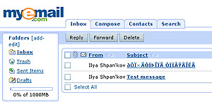 Порой нужно срочно проверить свою почту, а под рукой лишь чужой компьютер, на котором отсутствует ваша любимая почтовая программа. Не торопитесь скачивать почтовик из Сети или создавать новую учетную запись в имеющемся на компьютере мейлере не исключено, что помочь вам сможет онлайновый сервис MyEmail. Работает он довольно просто: на странице ресурса вы вводите свой почтовый адрес, требующий проверки, и пароль доступа, после чего перед вами появится стандартный почтовый ящик, в который будет поступать корреспонденция. При необходимости можно создать список из нескольких почтовых ящиков и проверять все свои учетные записи чохом. Авторы проекта предоставляют 1 Гбайт дискового пространства для хранения писем, предусмотрены также средства фильтрации спама. Задумка элегантная, но огорчает полное неприятие кириллицы сервисом.