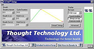 Принцип работы E-Z Air очень прост человек учится правильно дышать, синхронизируя свои дыхательные движения с заданным в программе типом (паттерном) дыхания. Задать можно все временные характеристики дыхания частоту, соотношение вдоха и выдоха, длительность пауз. Глядя на цветной столбик поднимающийся, замирающий ненадолго и опускающийся, как поршень (отставить нездоровые ассоциации!), мы делаем соответственно вдох, задержку дыхания и выдох. Просто? Однако чтобы довести ритмичное и правильное дыхание до автоматизма (достигнуть 4-й ступени системы йоги пранаямы) без помощи обратной связи, «вслепую», часто требуется не один год.