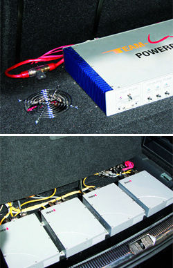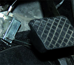 роботизированной коробке передач Caroline пришлось задействовать механику (см. фото).], то с тормозами дело обстоит сложнее. Система круиз-контроля предполагает автоматическое торможение, но по немецким законам оно ограничено тридцатью процентами от максимума. То есть слегка притормозить электроника может, а вот "ударить по тормозам" - нет. Пришлось ребятам из Team Lux монтировать электропривод и с помощью тросика механически прижимать педаль тормоза.