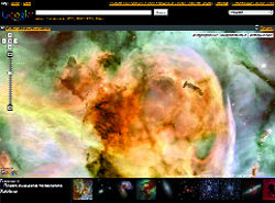 К услугам посетителей Google Sky снимки, сделанные могучими оптоэлектронными приборами - космическими телескопами Hubble, GALEX и Spitzer и орбитальной обсерваторией Chandra. Все эти аппараты участвуют в программе NASA "Great Observatories", и каждый видит Вселенную в своем диапазоне. Hubble и GALEX - в оптическом, Chandra - в рентгеновском спектре, а Spitzer улавливает инфракрасное излучение от источников за многие тысячи световых лет от Земли. Информация о космическом пространстве, собранная этими чуткими "глазами" человечества, теперь доступна любому желающему прямо в браузере. Можно уйти в свободный поиск, осматривая произвольные участки неба, а для тех, кто опасается заблудиться среди бескрайних космических просторов, приготовлены закладки с самыми интересными объектами. Обычный взгляд на небо, три фильтра отображения звездного свода - инфракрасный, микроволновый и исторический (позволяет наложить на небосвод карты древних астрономов), поиск в базе данных по названию небесного тела, быстрые ссылки на созвездия - предусмотрено практически все для комфортного и познавательного скай-серфинга. К сожалению, за удобство и навороченность приходится платить. Google Sky заметно проигрывает Google Earth в быстродействии - обновления картинки при зуммировании придется дожидаться несколько дольше. Впрочем, возможно, это следствие юного возраста службы.