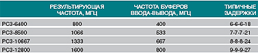 Предлагаю провести небольшой технологический ликбез и выяснить, откуда взялись те фантастические частоты, которыми щеголяет последнее поколение модулей DDR3, - они уже перевалили за два гигагерца и продолжают расти. Так вот, на самом деле, каким бы удивительным ни казался сей факт, со времен первой DDR настоящие рабочие частоты топчутся в диапазоне до 300 МГц. Но у памяти DDR, как и у всех ее последующих модификаций, буферы ввода-вывода научились за один такт передавать вдвое больше данных, за счет чего эквивалентная частота впервые удвоилась, достигнув 400-600 МГц. При этом, дабы обеспечить быстрые буферы данными, массив ячеек памяти соединили с буферами вдвое более широкой шиной, но отнюдь не увеличили частоту, что аукнулось возросшими задержками.