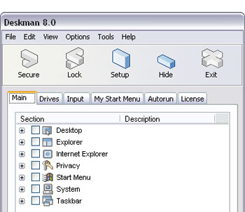 Пожалуй, самый надежный способ уберечь свою тщательно отлаженную систему от неосторожных действий других пользователей - ограничить доступ к ее основным функциям. И с этой задачей успешно справляется программа Deskman. Она позволяет не только блокировать доступ к веб-браузеру, настройкам стартового меню, панели управления и десктопу в целом, но и обеспечивает защиту на аппаратном уровне, регулируя доступ к USB-портам, оптическим приводам и даже кнопкам мыши. При необходимости можно создавать специализированные варианты меню Пуск и запускать систему в режиме киоска, позволяющем максимально ограничить свободу пользователя при работе на компьютере. Студентам авторы программы предоставляют скидку.