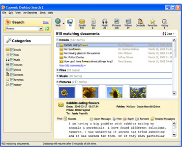 Как и положено подобным приложениям, перво-наперво Copernic проиндексирует все имеющиеся на жестких дисках документы, списки контактов и пр., после чего в считанные секунды найдет по вашему запросу любой из файлов, как бы он ни прятался в дебрях многогигабайтных дисков. В дальнейшем индексирование выполняется автоматически, что гарантирует бесперебойную работу программы в течение неограниченного времени.