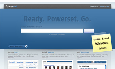 Авторы проекта Powerset сочли такую ситуацию неприемлемой и попытались создать алгоритмы, позволяющие вести поиск с учетом всех слов, введенных пользователем. "Мы хотим, чтобы компьютер понимал человеческий язык, - говорят разработчики, - а не мы приноравливались к особенностям восприятия машиной наших команд". Проект этот совсем молодой (публичное тестирование началось в мае текущего года), и авторы надеются, что постепенно им удастся научить движок максимально точно понимать, что же хочет найти пользователь. Пока поиск осуществляется только в статьях англоязычного варианта Wikipedia.