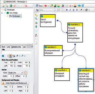 Mindscape - не поверите, но это полноценная система мозговых карт, встроенная в чудо-программу! В общем контексте органайзера Mindscape смотрится чрезвычайно уместно и претендует на подлинное ноу-хау (см. скриншот [4]).