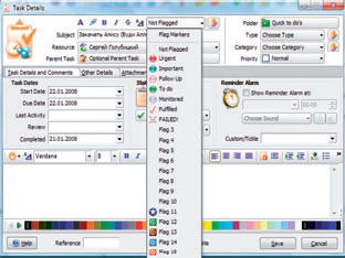 Calendar - именно этот интерфейс воспроизведен на скриншоте [2]. Отличия от Outlook очевидны. Практически идеальный в плане удобства пользования интерфейс: изменение времени Appointment простым перетягиванием края рамки, подробное содержание события в pop-up-окне при наведении на него курсора мыши (см. скриншот), очень практичный календарь на два месяца в правой верхней части окна и исчерпывающее информационное окно по каждому событию с четырьмя табуляторами - Appointment, Comments (комментарии), Links (связи, то есть задействованные в событии персоналии) и Tasks - постоянно присутствующая закладка с перечислением всех текущих задач, не привязанных к определенному времени на календаре (в отличие от Appointments - тех же Tasks, но только с жесткой временной фиксацией).