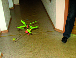 Заменив винт на исправном "Комаре", я несколько раз поднял его под потолок. Координация движений у меня после праздников слегка нарушилась, и удерживать вертолет в воздухе больше пары минут я не рискнул. Худо-бедно стало получаться движение вперед, удержание машины на определенной высоте и более-менее мягкая посадка. Полноценные же испытания были отложены до выезда на дачу.