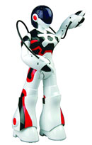 Вообще заметно, что производители роботов, раньше ориентировавшиеся исключительно на мальчиков (или на их недоигравших в детстве пап), все больше присматриваются к женской аудитории. Как правило, "девочковые версии" отличаются скорее косметически: они более "эмоциональны-общительны" и допускают навешивание всяких милых побрякушек вместо боевых лазеров. Встречаются, впрочем, и более добросовестные адаптации. Так, на стенде Wowwee шоустоппером выступала симпатяшка FemiSapien. Среди ее талантов - исполнение зажигательных танцев под музыку (пластика просто обалденная), целование собеседника и вручение ему визитной карточки (ее, конечно, придется самому предварительно вложить в механическую руку). Говорят также, что эта дамочка способна вертеть почем зря своей мужской половиной - "Робосапиеном", дистанционно им манипулируя (правда, на стенде этого не показывали). Кнопок на теле нет: управлять роботом можно наклоняя его голову (переключение между режимами обучения, демонстрации изученного и автоматическим режимом), а также поворачивая четырехпозиционные джойстики кистей рук (всего 56 функций). Благодаря инфракрасному сенсору, FemiSapien чувствует объекты на расстоянии в полметра: это помогает избегать столкновений во время танцулек и не всегда целовать пустое место. В общем, идеальная женщина.