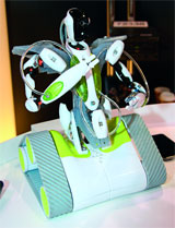 Французская Meccano (в США ее продукция продается под брэндом Erector компании Nikko) представляла новых членов робосемейства Spykee. Первый робот-шпион Spykee, работающий через WiFi, уже продается в Штатах за 300 долларов. 30-сантиметровый "богомол" на гусеничной тяге может работать как охранная сигнализация (активируется в ответ на какое-либо шевеление и отправляет тревожный e-mail с картинкой), веб-камера, VoIP-терминал или MP3-плеер. В октябре появятся еще три модели: Spykee Cell, управляемый с телефона по Bluetooth; Vox - с голосовым управлением, а также его "феминизированная" версия Miss. Как и прочая продукция Meccano, эти роботы предназначены скорее для детей, но некоторые функции пригодятся и ленивым взрослым: Vox или Miss, к примеру, может по голосовой команде включить телевизор (программируемый ИК-передатчик) или побаловать хозяина музыкой с помощью iPodа, покоящегося в "набрюшном кармане".