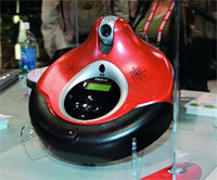 Похожий аппарат (и по функциям, и по внешнему виду) показывала также корейская компания Microrobot. Правда, ее шпион Robocam не утратил исконно пылесосных умений, а кроме того, оснащен набором сенсоров безопасности (газа, открытых дверей, движения). В Корее этот робот будет продаваться за 600 долларов в комплекте с 3G-телефоном, то есть упор делается на возможность мобильного контроля за домом.