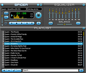 Неудивительно, что авторы аудиоплеера Spider назвали свое детище именно так - подобно своему восьмилапому тезке, эта программа способна на многое. Помимо воспроизведения музыкальных файлов самых разных форматов, плеер умеет редактировать MP3-теги, конвертировать файлы, "грабить" компакт-диски, накладывать на музыкальный материал различные эффекты в режиме реального времени, редактировать тексты песен, прослушивать и осуществлять запись потокового аудио. Кроме того, по вашему желанию Spider может сменить шкурку (то бишь оформление и язык меню). Основной кодировкой является Unicode. Отметим также возможность проигрывания MIDI-файлов с произвольными коллекциями инструментов SoundFont.