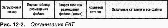 Том FAT делится на несколько областей (рис. 12-2). Таблица размещения файлов (file allocation table, FAT), от