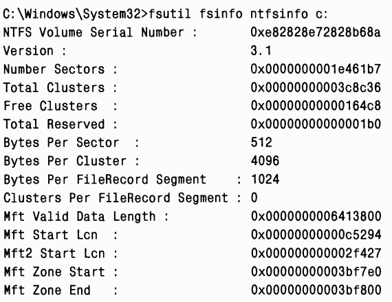 Для просмотра информации о NTFS-томе, в том числе о размещении и размере MFT и зоны MFT, вы можете использовать в Windows 2000 утилиту NTFSInfo (с сайта wwwsysinternals.com), а в Windows XP или Windows Server 2003 встроенную программу командной строки Fsutil.exe: