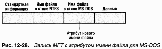 Имена MS-DOS полнофункциональные псевдонимы файлов NTFS и хранятся в том же каталоге, что и длинные имена. Ha рис. 1228 показана запись MFT для файла с автоматически сгенерированным MS-DOS-именем.
